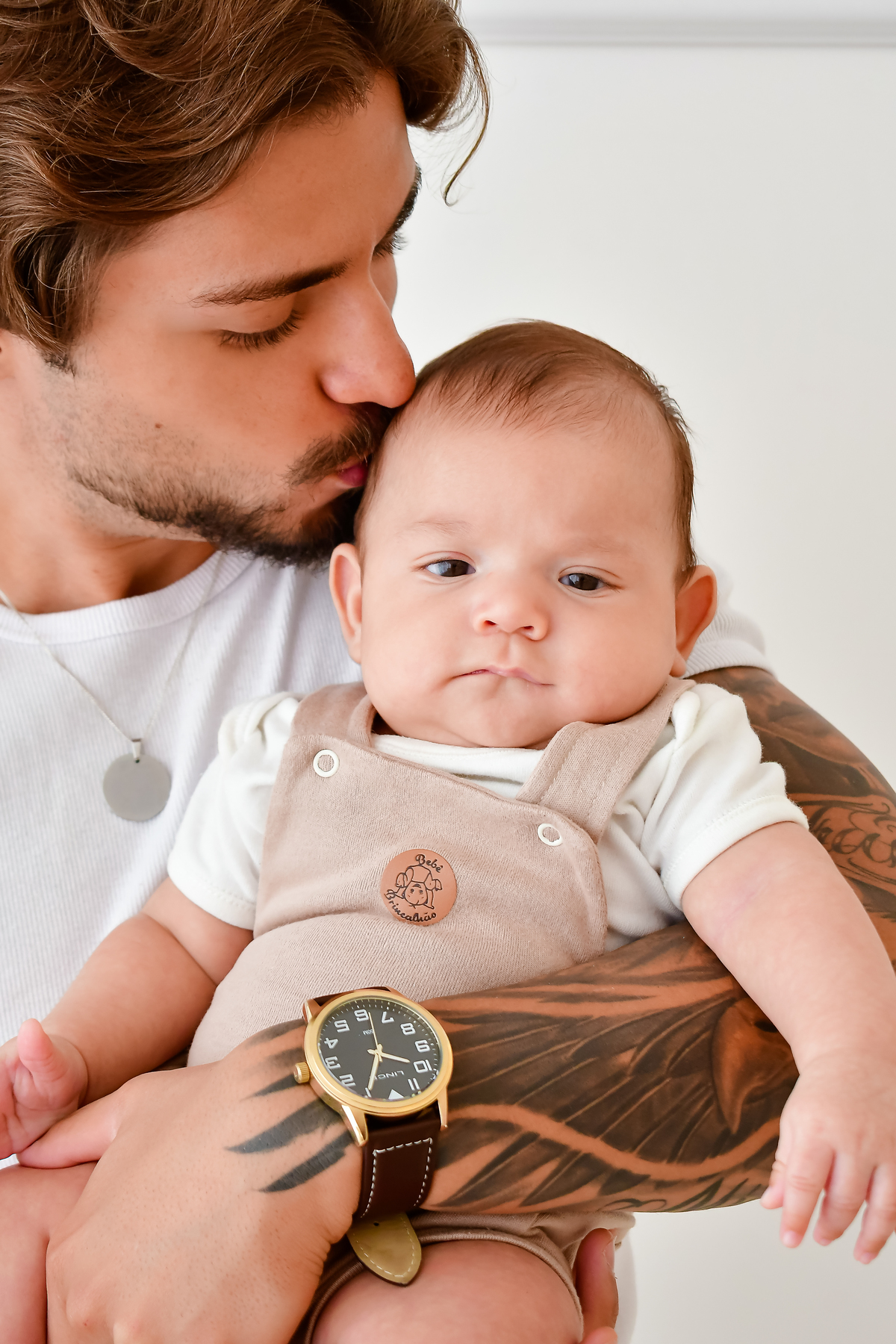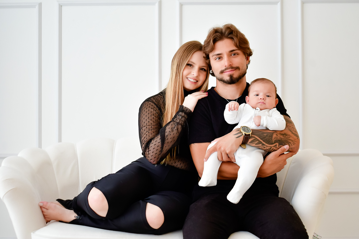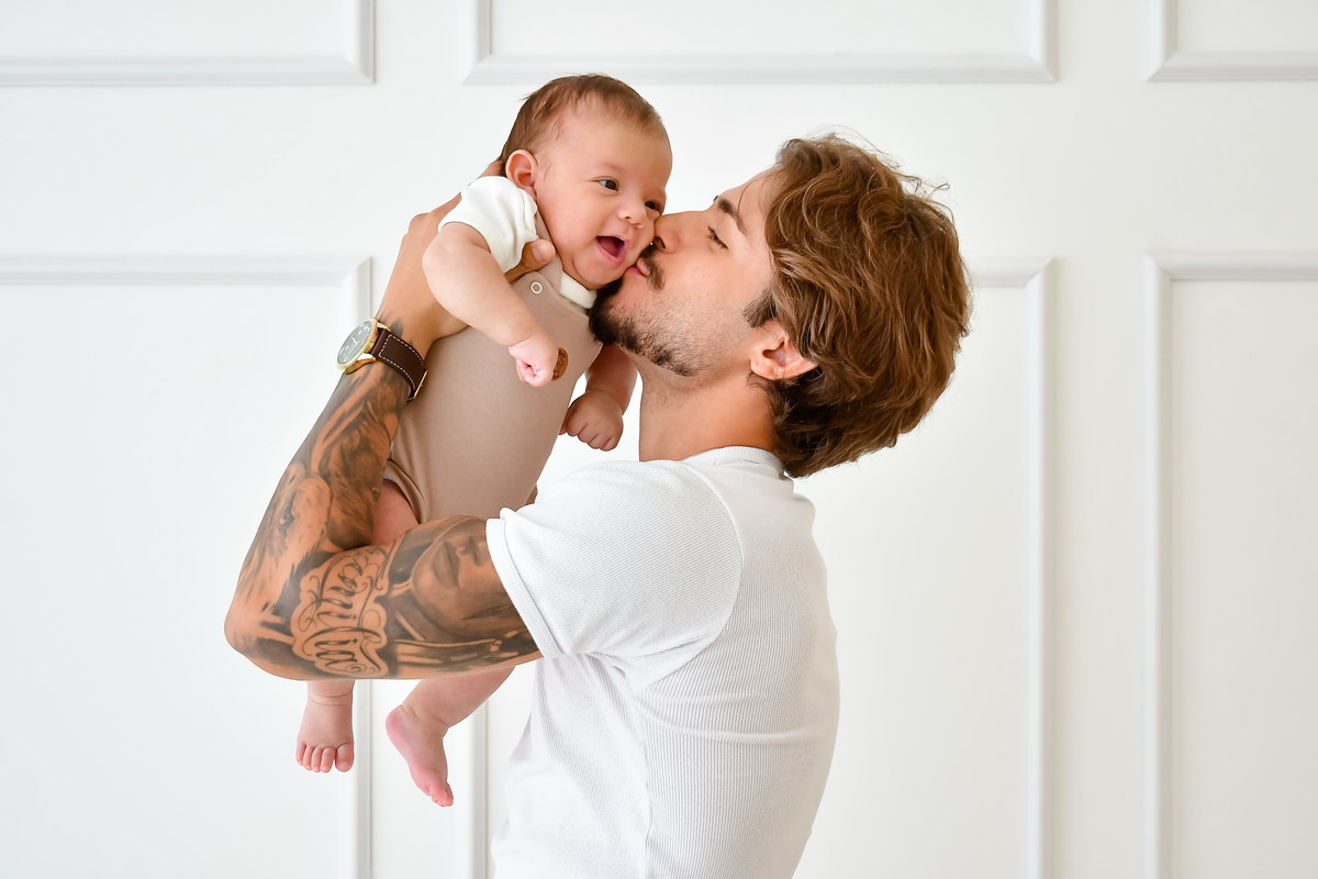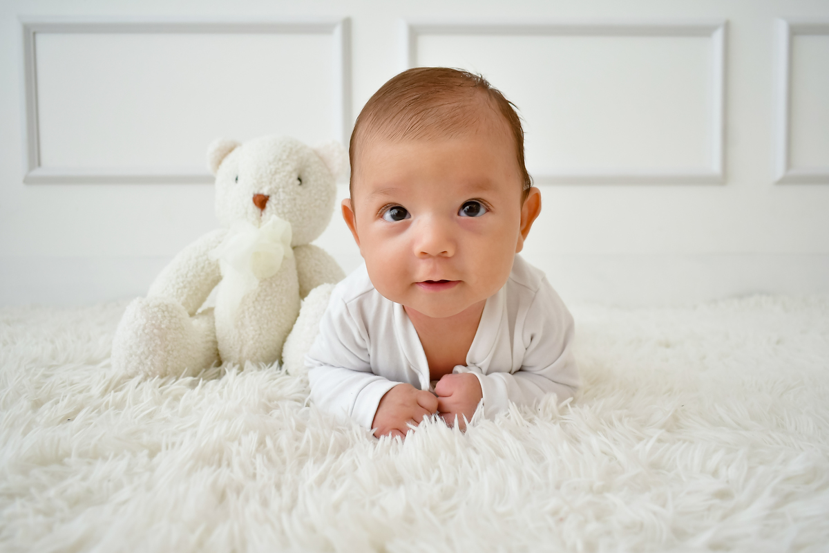 Três meses de vida, cabendo inteirinho no abraço que o rodeava.