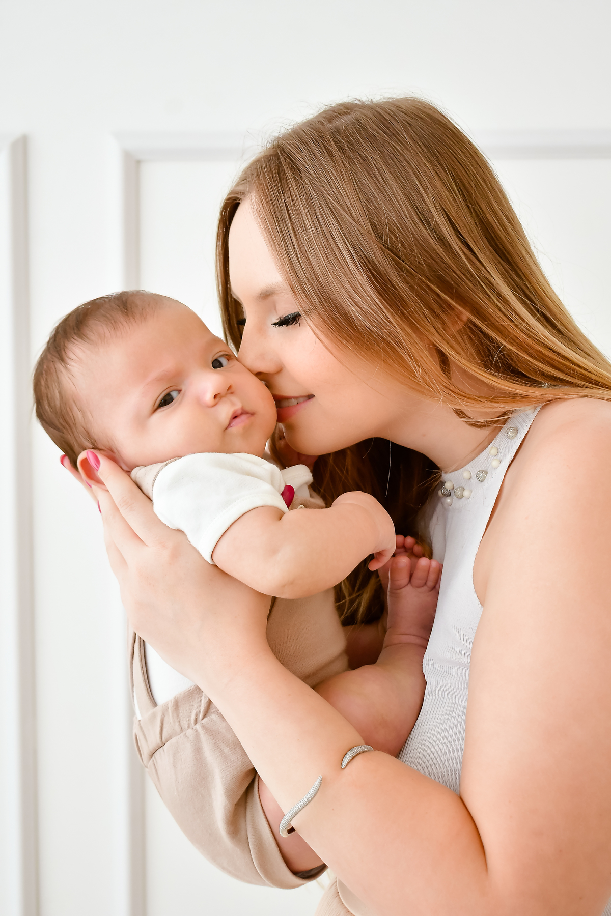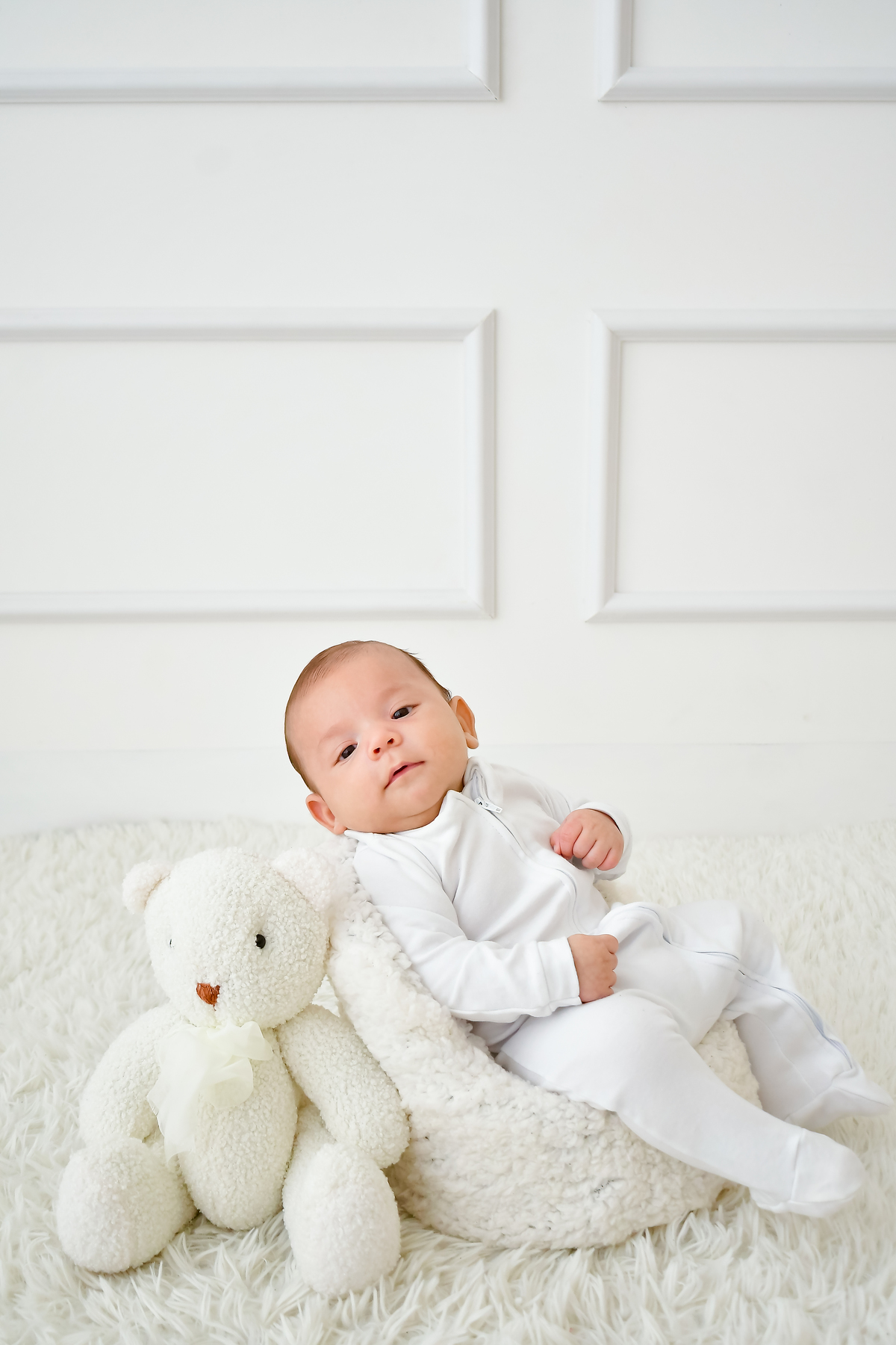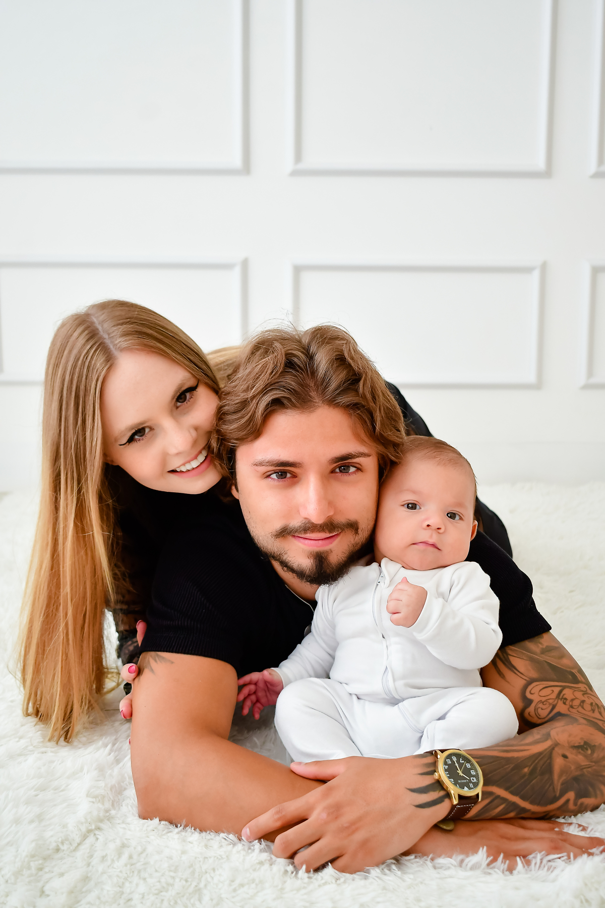 Três meses de vida, cabendo inteirinho no abraço que o rodeava.