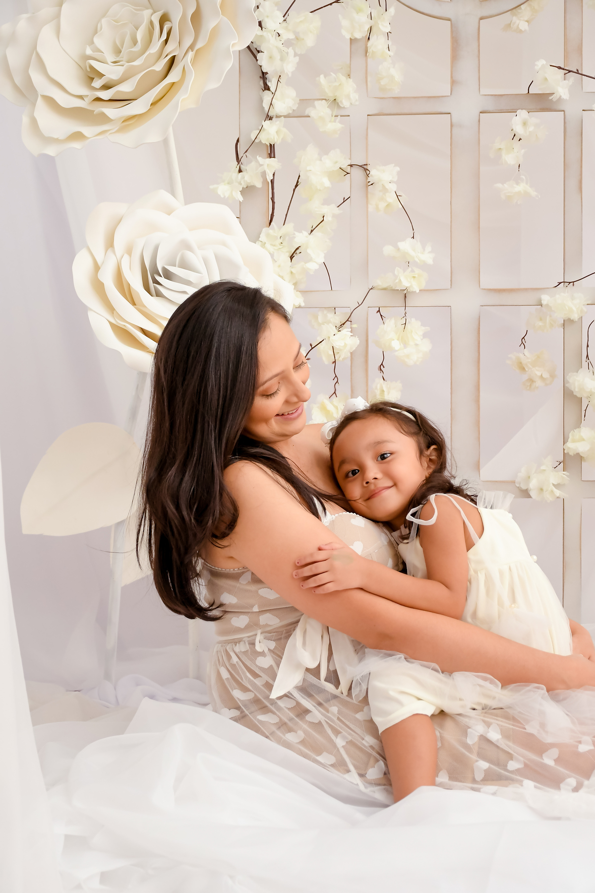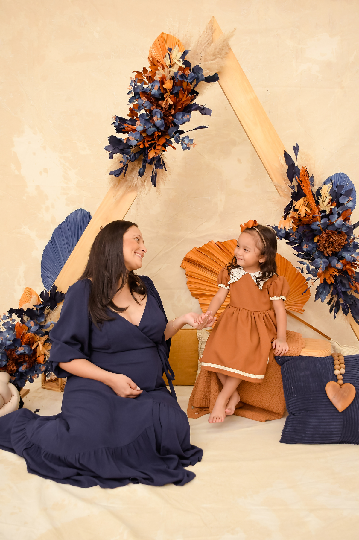 Nos divertimos demais nesse lindo e clássico ensaio com cenário clean e Boho de dia das mamães.