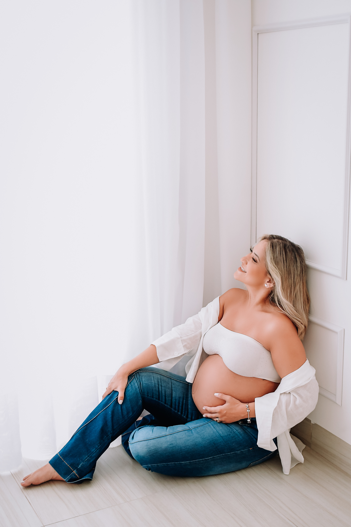 Cada momento deste ensaio realizado no estúdio de Itu traz a beleza dessa fase mágica da maternidade, repleta de luz, carinho e muita emoção.