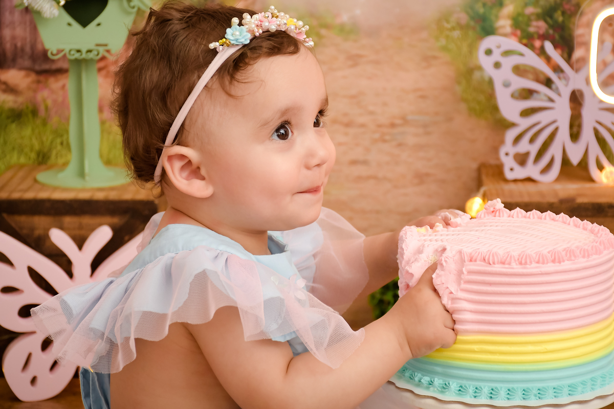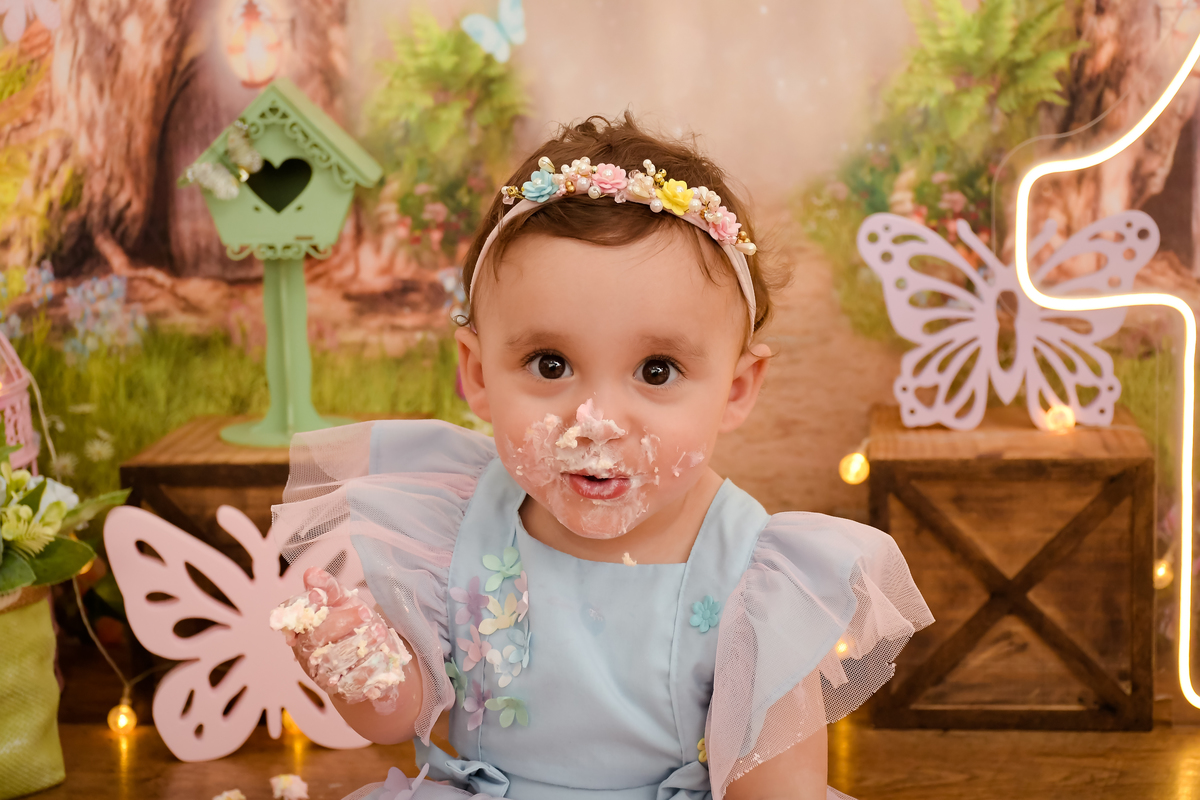 Mamãe Ana Paula pediu tema de borboletinhas com jardim encantado para comemorar o primeiro aninho de sua filhinha, mas encanto mesmo ficou a doce Amanda nesse ensaio lindo! hihihi