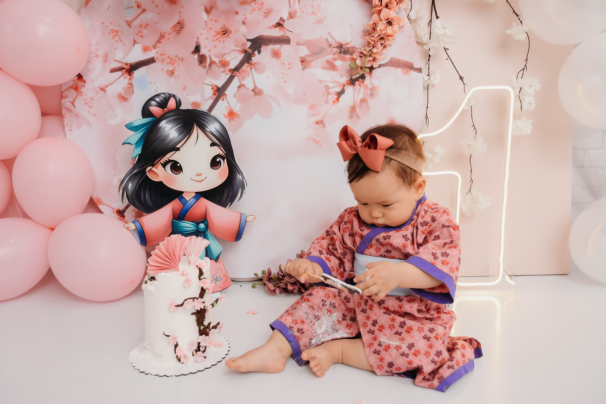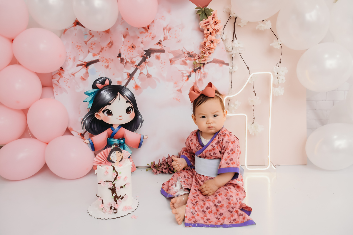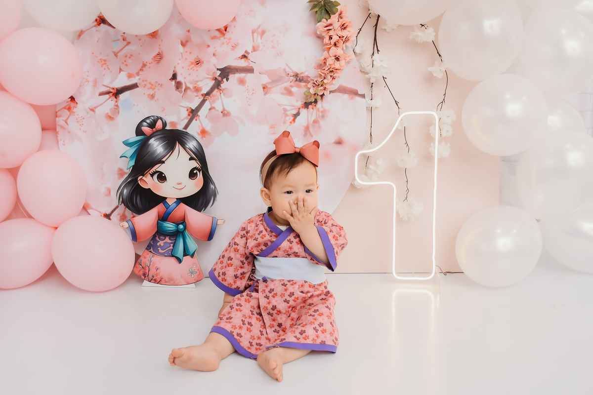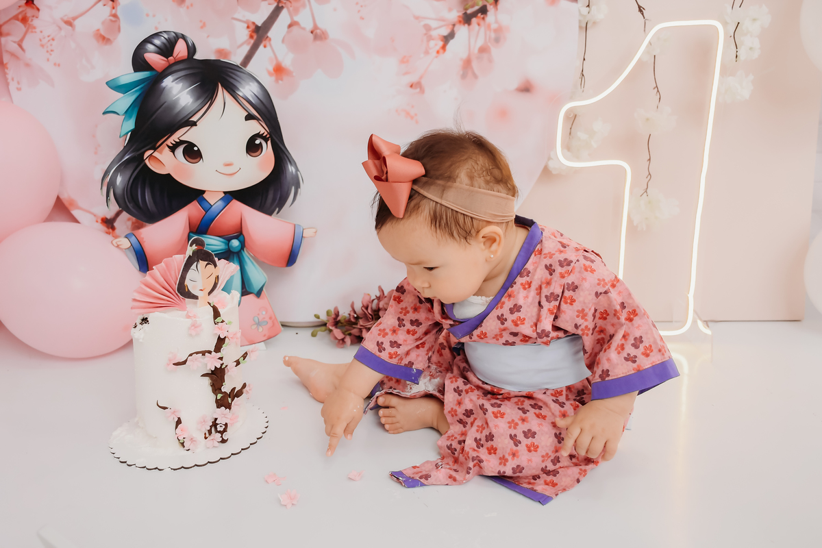 A mamãe Karin Kaory pediu tema de uma princesinha chinesa da Disney, Mulan, para comemorar o primeiro aninho da pequena Anne! Anne fez todo acompanhamento mensal e hoje foi dia de comemorar seu primeiro aniversário! Ficou um docinho!