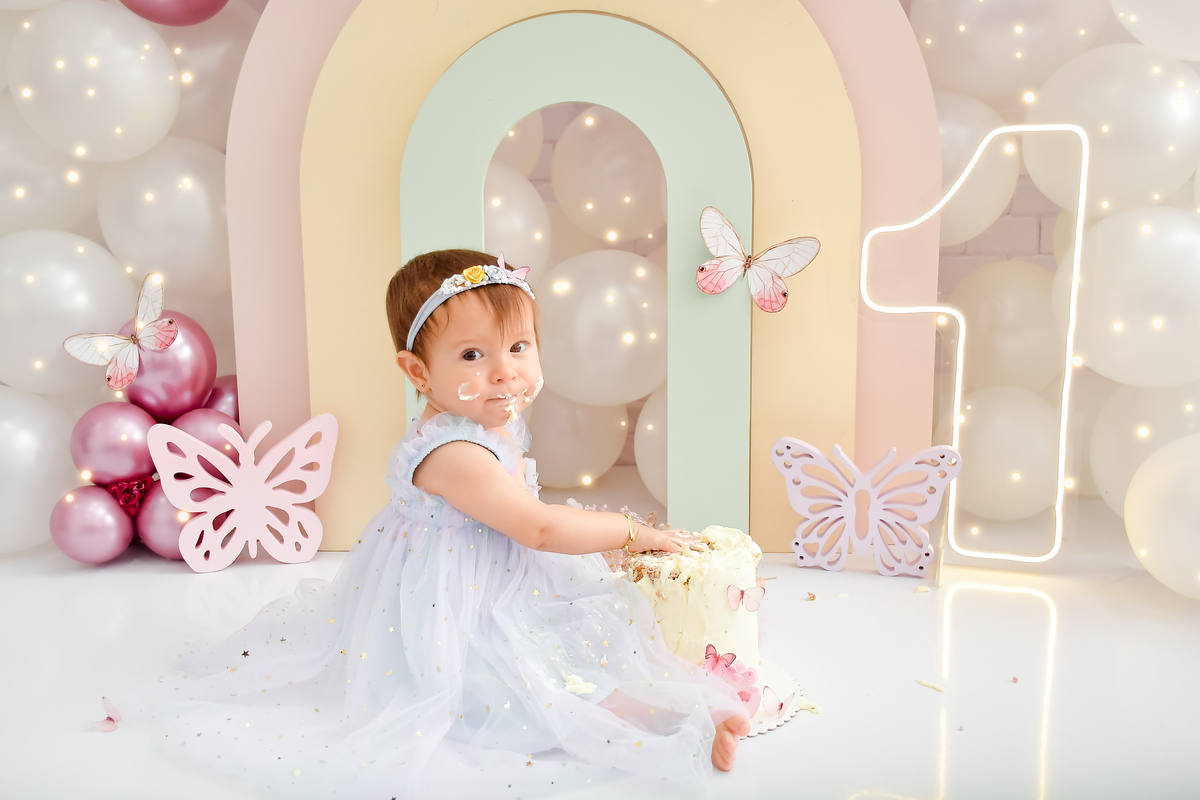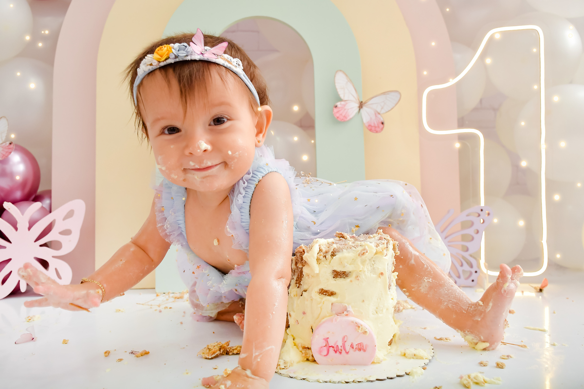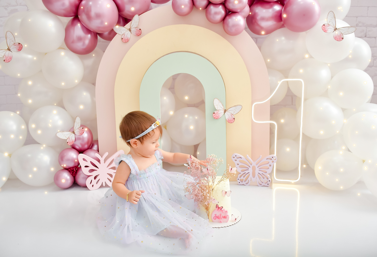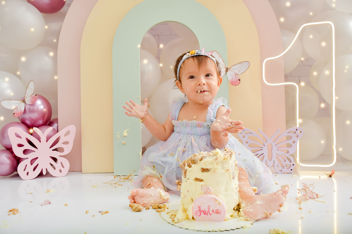 Julia, a linda borboleta arco-íris, celebrando seu primeiro aninho trazendo ainda mais luz e cores para o mundo. 🦋🌈✨