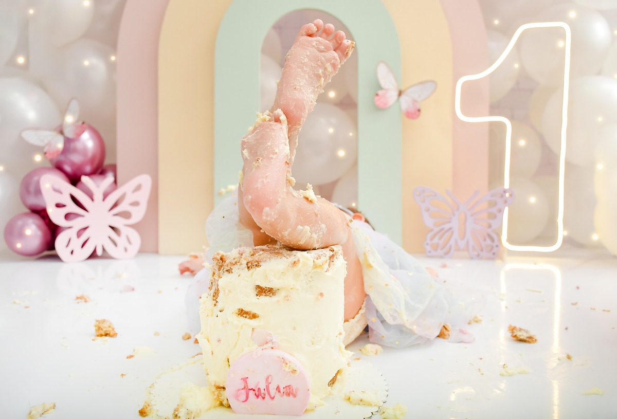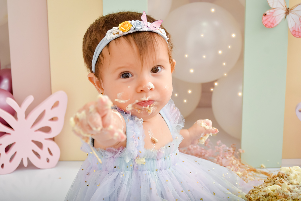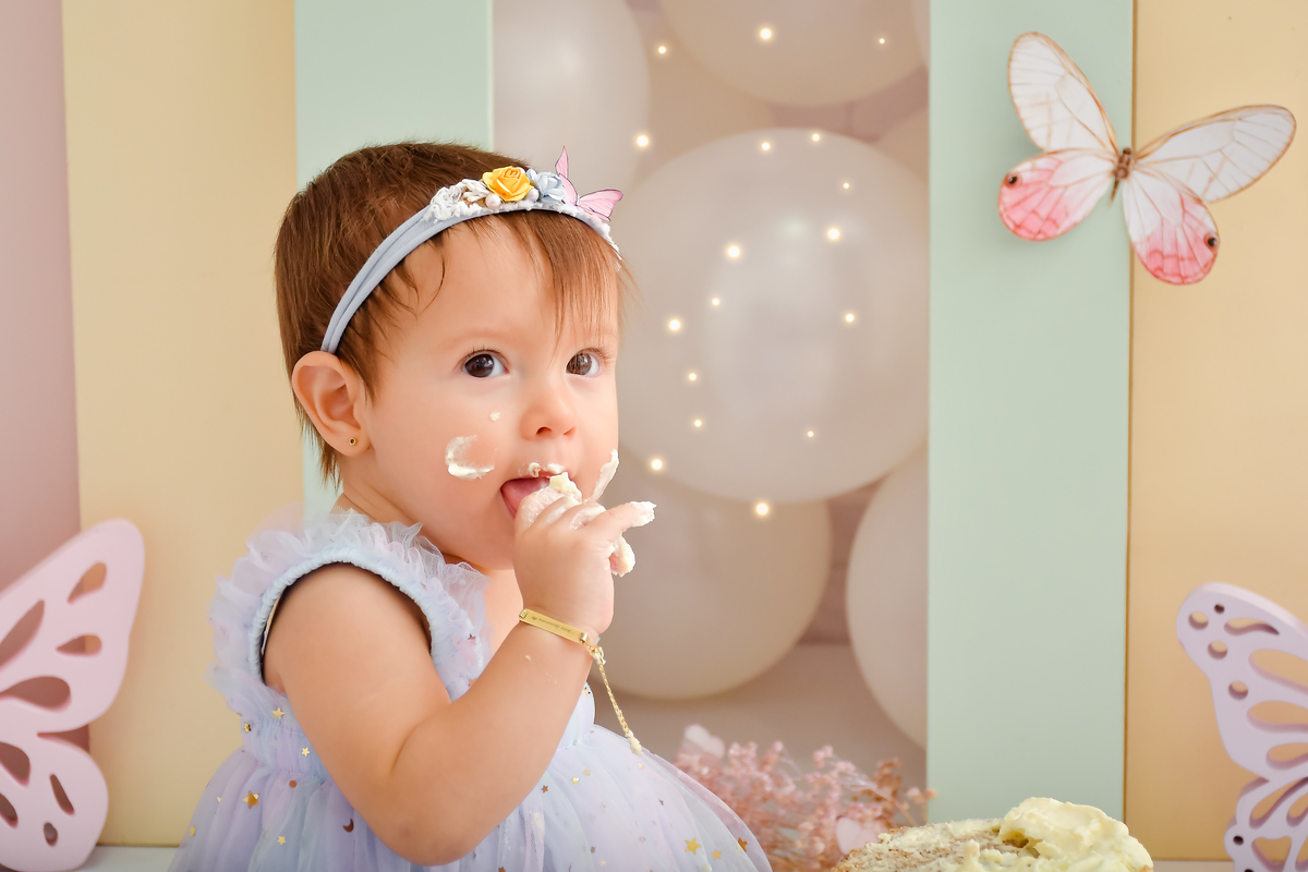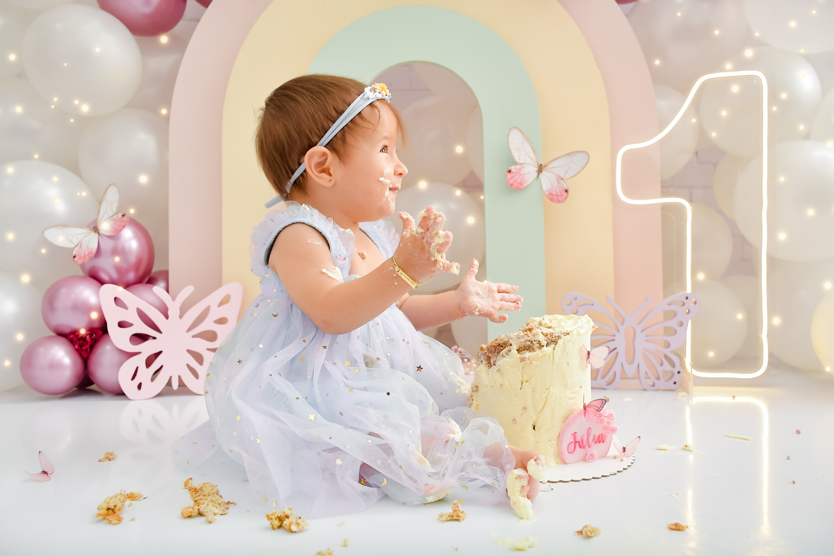 Julia, a linda borboleta arco-íris, celebrando seu primeiro aninho trazendo ainda mais luz e cores para o mundo. 🦋🌈✨