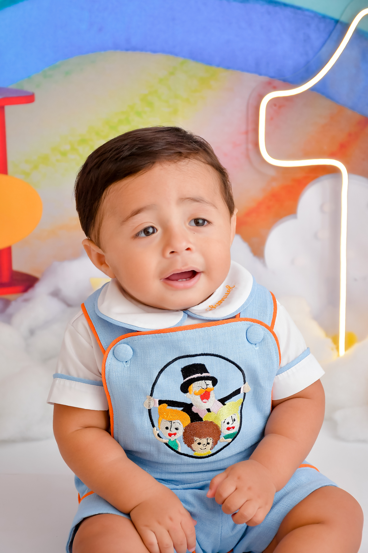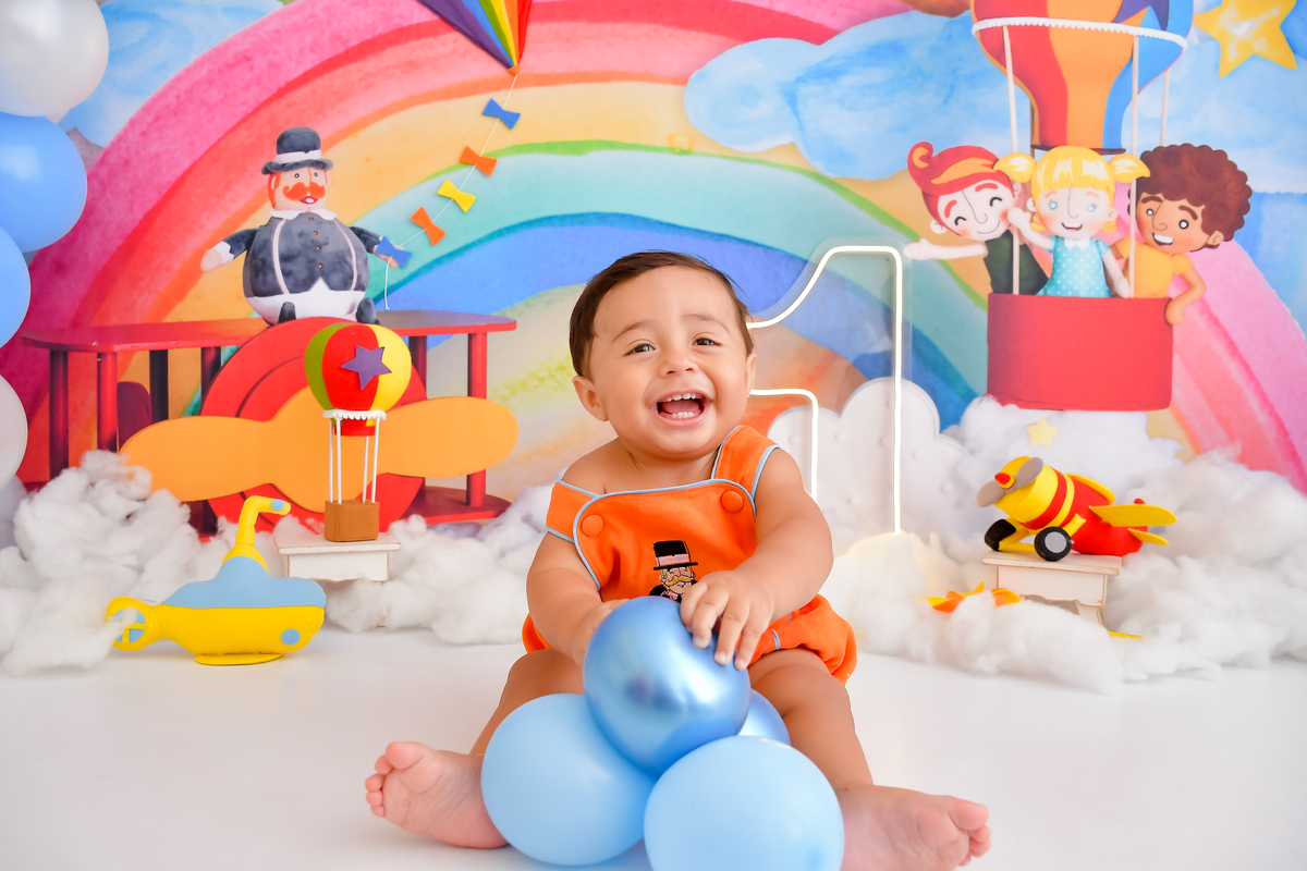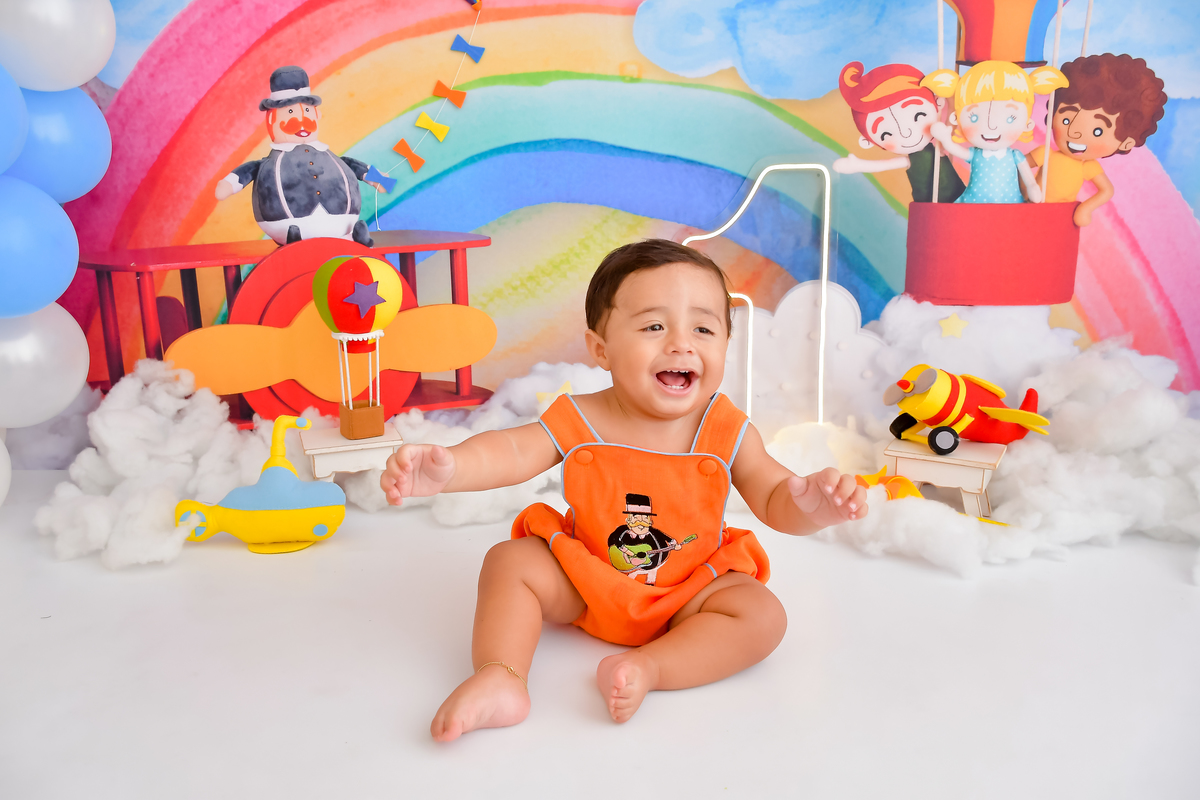 A sessão de 12 meses, a mamãe pediu um ensaio inspirado no seu desenho e canção preferidos: Mundo Bita!