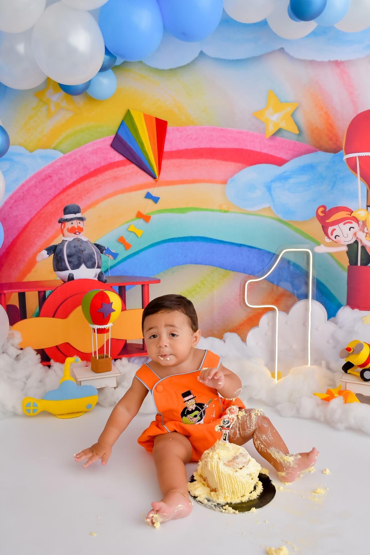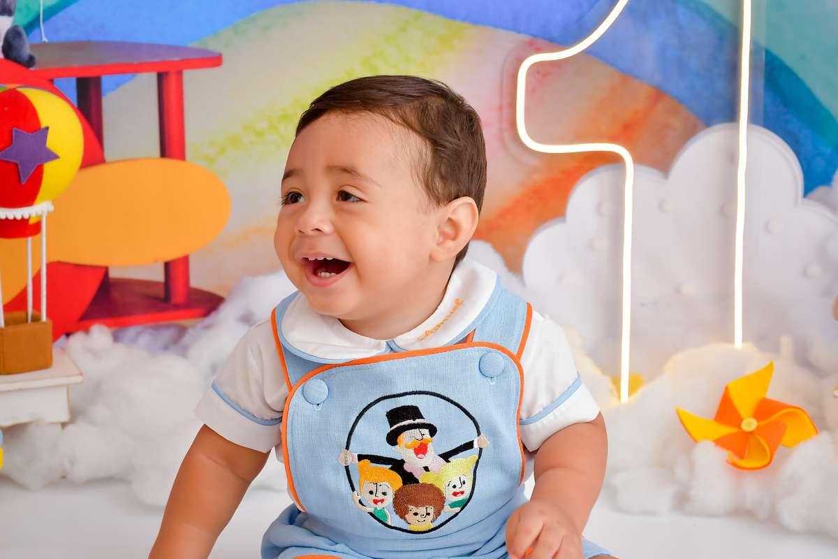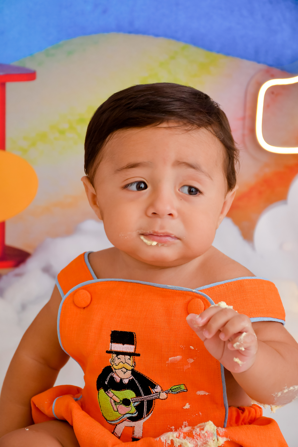 A sessão de 12 meses, a mamãe pediu um ensaio inspirado no seu desenho e canção preferidos: Mundo Bita!